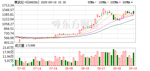 9月1日,高盛发布研报指出,寒武纪二季度业绩强劲,保持对公司积极看法,上调12个月目标价14.7%至2104元。
